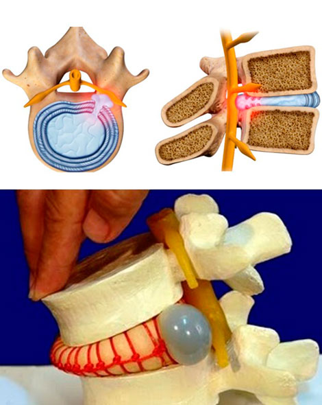 La hernia discal es una enfermedad en la que parte del disco intervertebral (núcleo pulposo) se desplaza fuera de su lugar y como consecuencia comprime la médula espinal o alguna raíz y produce dolor, entonces es cuando puede hablarse de auténtica hernia discal.