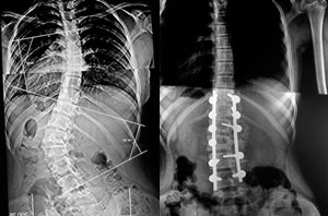 10 meses Post-operado, se tuvo que realizar varias osteotomías de columna, actualmente sin dolor, realiza actividades cotidianas sin limitaciones.