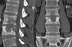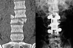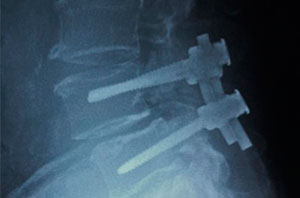 Varón de 35 anos, accidente de transito. Operado en primeras 24 horas con reconstrucción total de columna con uso de tornillos y reemplazo de cuerpo vertebral de vertebra fracturada. Presento recuperación total de lesión neurológica inicial.