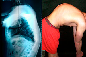 Cifosis rigida toracolumbar (Enfermedad de Scheuermann): varón de 20 anos, consulta por dolor toraco lumbar intenso, realizo 4 anos de terapia física y rehabilitación sin éxito.
