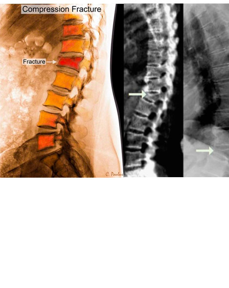 Las fracturas de los huesos que afectan a la columna vertebral se llaman fracturas vertebrales o fracturas vertebrales por compresión